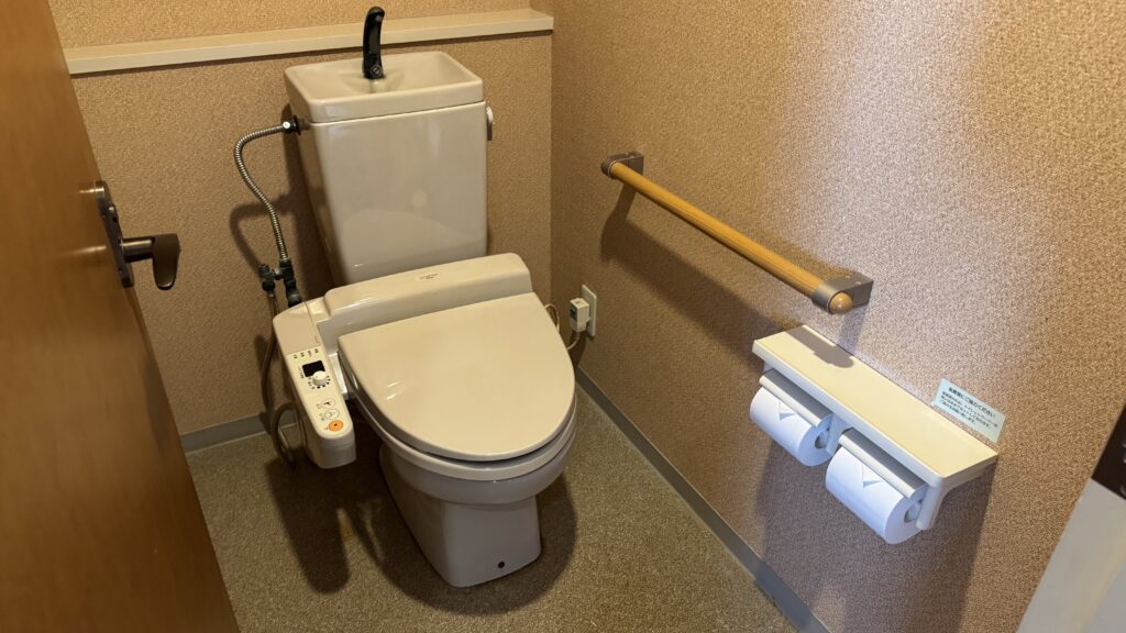 お部屋にはきれいなトイレも備えられています。お風呂はありませんので、大浴場を利用しましょう。