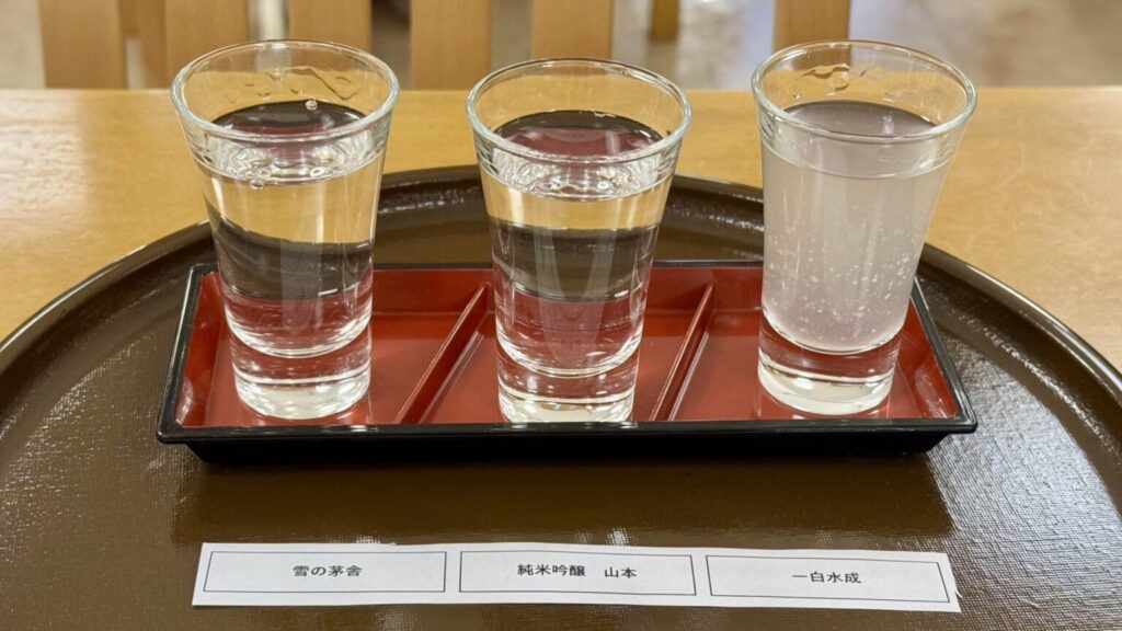 お酒のメニューも充実しており、ビール・日本酒・焼酎・サワーやカクテル・ワインなどいろいろありました。わたしは秋田の日本酒飲み比べセットをいただきました。