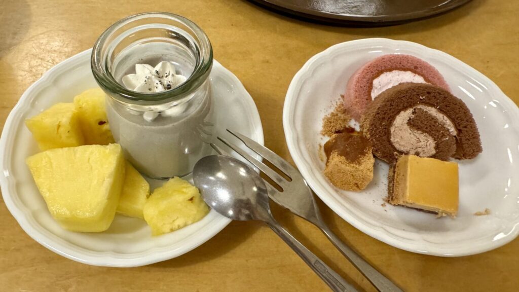 全体的にヘルシーなメニューが多く、ビュッフェといえど湯治場らしい食事内容。どれもおいしくて、温泉で体力を消耗した後だったこともあり、たくさんいただきました。