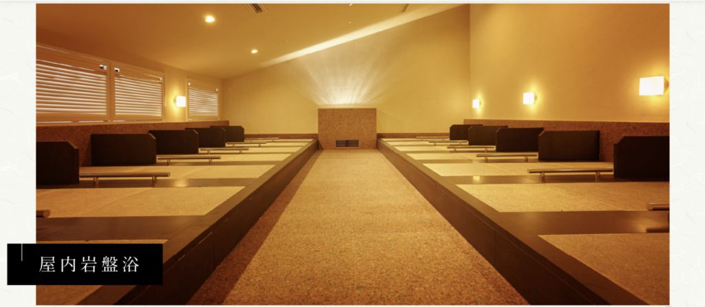 通常の岩盤浴より温度が高くないため、出たり入ったりせずに入りっぱなしでゆっくり滞在できます。ホルミシス効果を得るためにじっくり長く入るためのちょうどよい温度設定かもしれないですね。